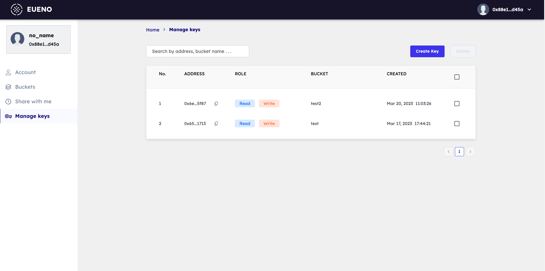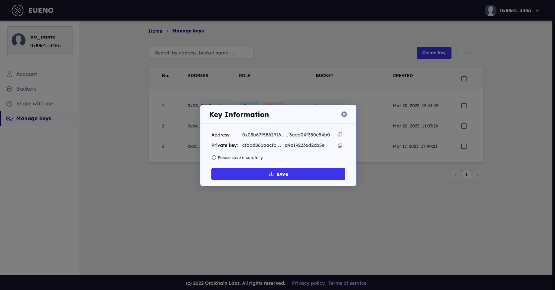 **Step 3**: Download the key and store it in a safe place. This key will be used in your applications with the eueno system.